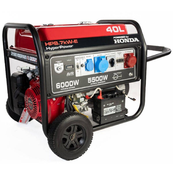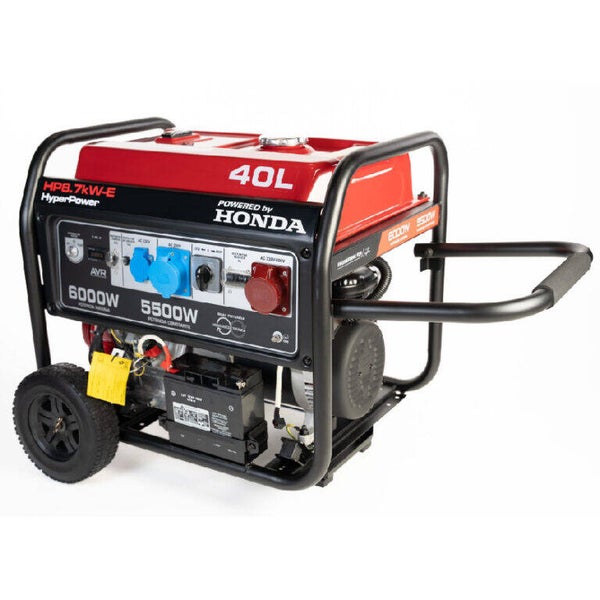 Groupe électrogène essence HyperPower HP8500E – Moteur Honda – 5,5 kW – Triphasé 230V / 400V